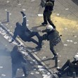Напрежението ескалира, когато маскирани демонстранти започнаха да хвърлят коктейли "Молотов" срещу силите на реда, които отвърнаха със сълзотворен газ и гумени куршуми.