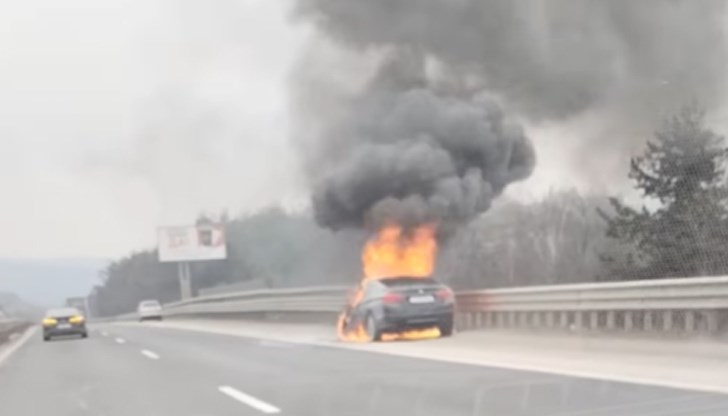 Тежък инцидент блокира движението по автомагистрала "Тракия" днес около 12:00 часа. При километър 25 в посока Бургас автомобил марка БМВ се запали и изгоря напълно.