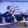 Ситуацията ескалира, когато Ангел Георгиев постави табелата върху парламентарната трибуна, което наложи незабавна намеса от страна на квесторите.