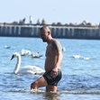 Независимо от факта, че температурата на морската вода е едва 6-7 градуса, някои по-смели ентусиасти не се поколебаха да се потопят във водите на Черно море. Вълнението на морето е слабо - между 1 и 2 бала, което допълнително насърчава любителите на морските къпания.