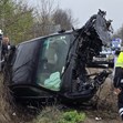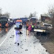 Силата на сблъсъка е била толкова голяма, че двигателят на германския автомобил е бил изхвърлен на пътното платно. Предната част на по-малкия товарен автомобил също е сериозно деформирана от удара.