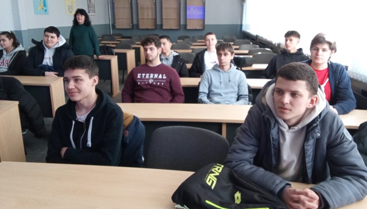 Четирима ученици - Кристиян Кунев от осми "А" клас, Давид Габаров от девети "В" клас, Синан Тефъков от десети "В" клас и Мирослав Йорданов от десети "Г" клас изнесоха презентация пред възпитаниците на гимназията от осми до единадесети клас.