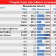 При електроенергията повишението на покупателната способност е още по-впечатляващо - близо 5 пъти. Ако с една минимална заплата през 2004 година са могли да се закупят 1000 киловатчаса, през 2024 година този обем достига 4240 киловатчаса.