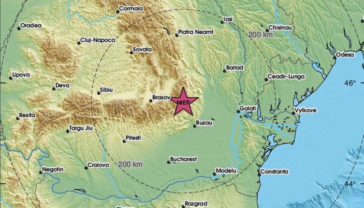 Сеизмолозите са определили координатите на епицентъра на 45.614 северна ширина и 26.517 източна дължина, на дълбочина от 126 километра.