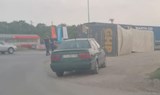 Кола се обърна по таван на пътя Басарбово - Иваново