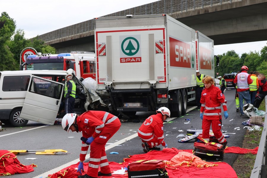 Трагедията се е разиграла около 7:30 часа местно време, когато на магистрала A25 се образувало задръстване. 47-годишен австриец, управляващ тежкотоварния автомобил, е спрял превозното средство и е включил аварийните светлини. Шофьорът на микробуса, който е с румънска регистрация, вероятно не е забелязал спрелия камион и се е врязал в него.