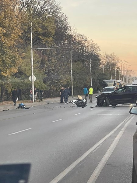 Инцидентът е станал след моста на Захарна фабрика в посока Люлин. По първоначална информация джип е блъснал моториста отзад, съобщи 24 ЧАСА.