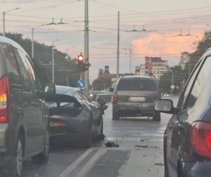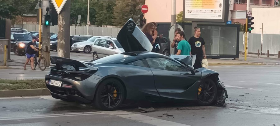 Скъпият автомобил се е ударил в миниван на кръстовището. По макларъна има значителни материални щети. Очевидци споделят, че автомобилът се е движил с изключително бърза скорост преди инцидента.