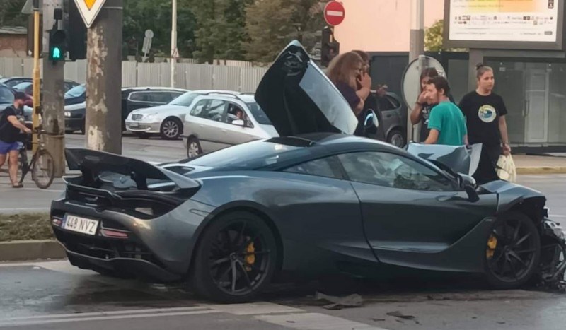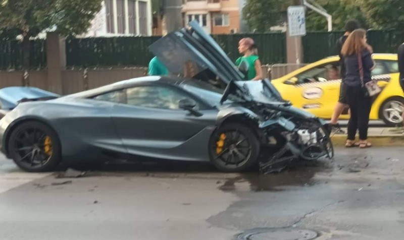 Макларън с чужда регистрация бе потрошен от млад шофьор в центъра на София. Инцидентът е станал на кръстовището на булевардите „Сливница” и „Димитър Петков”. От кадрите, публикувани в „Забелязано в София“, се вижда как шофьорът върви и събира части от скъпата кола.