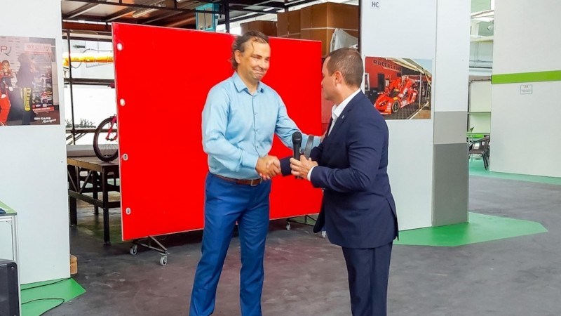 Кметовете на Русе и Гюргево Пенчо Милков и Андриан Ангелеску, и изпълнителният директор на Син Карс Росен Даскалов срязаха лентата на новата производствена част от Центъра за проучване и разработки на фирмата в Русе.
