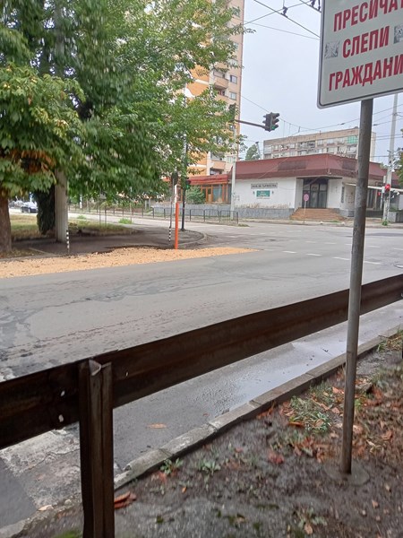 Н са третата снимка се вижда една желязна тръба, която излиза от земята на разстояние от тротоара за ляв завой към у-ще "Бр. Миладинови". Преди седмица говорих с някакъв чантаджия/началник/ на работниците да обезопасят тази тръпка със знак, тел, червен парцал..... защото някой може да се блъсне в това нещо, което щяло някога да бъде нещо си! Обеща, но до днес си стърчи без обезопасяване!
