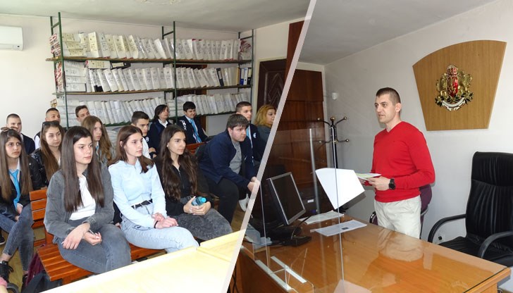 Четири са българските конституции до момента, разказаха пред младежите съдия Атанас Димитров и съдия Пламен Дочев от Районен съд – Бяла. По-задълбочено беше разгледана тази, приета през 1991 г., действаща и днес. Десетокласниците научиха за основните принципи, върху които се изгражда политическата система на обществото – политически плурализъм, разделение на властите на законодателна, изпълнителна и съдебна. След въпрос от ученик, съдия Димитров сподели и личните си мотиви да работи в наказателно отделение. Магистратите връчиха удостоверение на всеки младеж за участието му в Образователна програма „Съдебната власт – информиран избор и гражданско доверие. Отворени съдилища и прокуратури“, както и Конституция на Република България и информационни брошури.