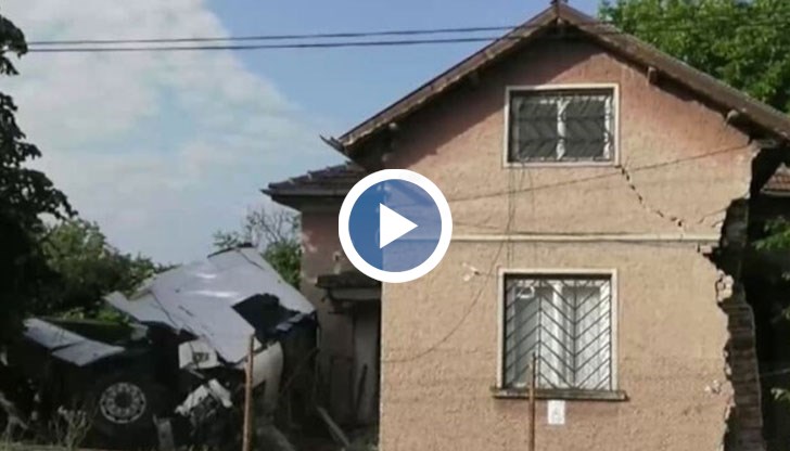 Само за секунди 90-годишният Константин Коцев остава без половината си къща. ТИР-ът спрял точно пред вратата му. Въпреки пукнатините и липсата на стени от силния удар, възрастният човек отказва да се напусне бащиния си дом.