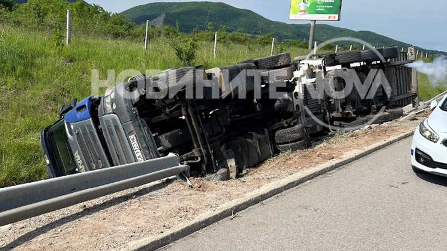 Цистерна се обърна на магистрала „Струма”