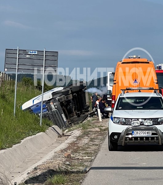 Цистерна се е обърнала на АМ „Струма”, съобщи NOVA.