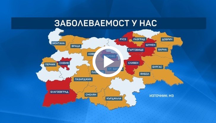 Областите в "червената зона" са София, Благоевград, Габрово, Сливен, Търговище, Шумен и Русе. В тях над 120 души на 10 хиляди население за положителни за COVID-19. От днес в Бургас започват да действат първите два буферни центъра за разпределяне на пациенти с коронавирус.