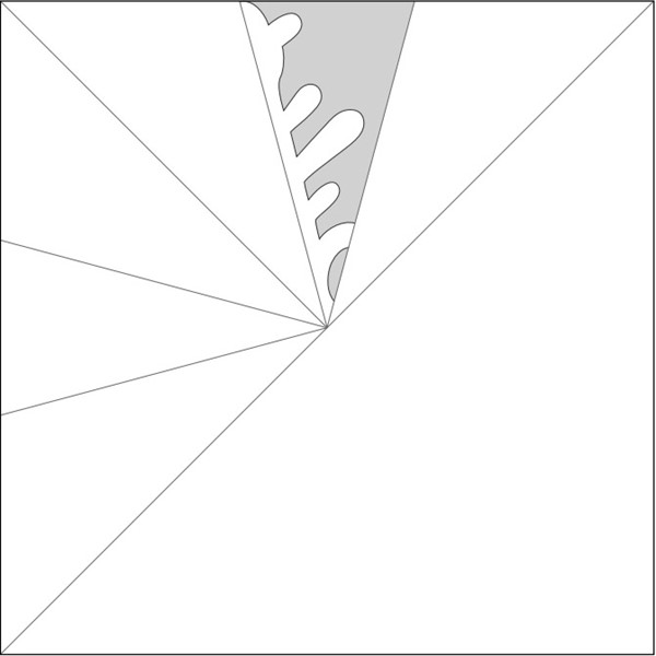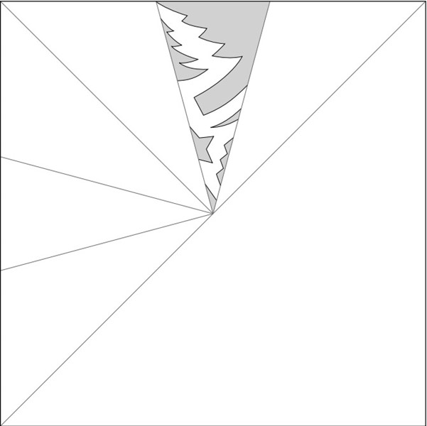 След прегъването изрежете стърчащите части по права линия, така че отново да се получи триъгълник.