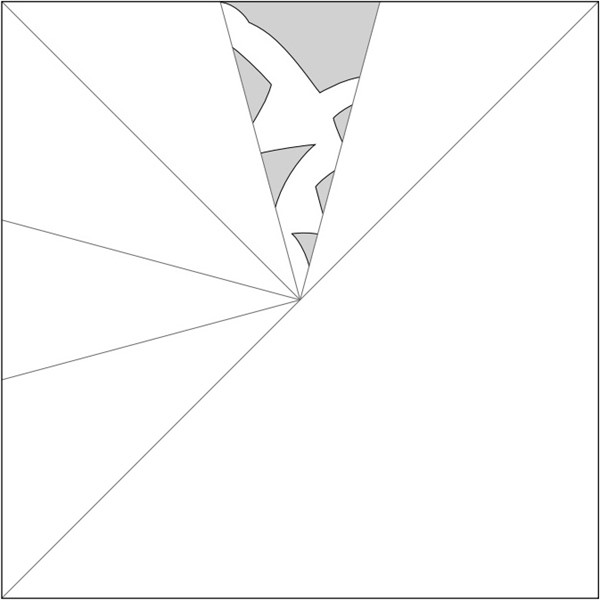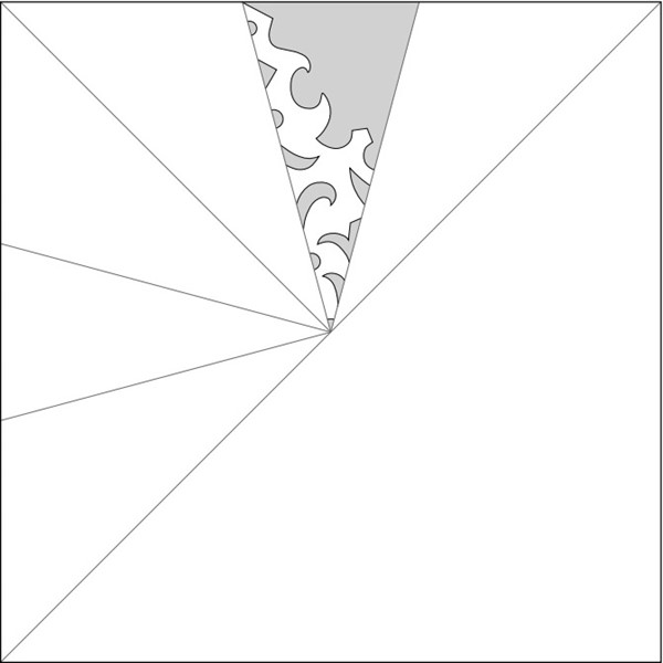 Следва една от най-важните стъпки. Полученият триъгълник трябва да се раздели на 3 равни части. Това може да стане с транспортир – 3 части по 30 градуса. Но ако не разполагате с транспортир можете приблизително да го разделите на равни части.