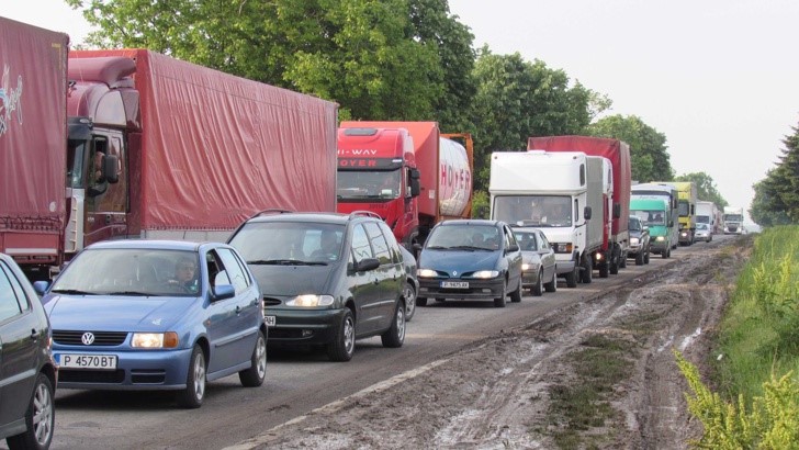В продължение на няколко часа тапа от двойна колона ТИР-ове по международното шосе блокираха движението към граничния пункт. Единствено празничният ден и ранните часове попречиха ситуацията да ескалира, тъй като имаше по-малко автомобили на път за работа, предава кореспондентът на БГНЕС от крайдунавския град.