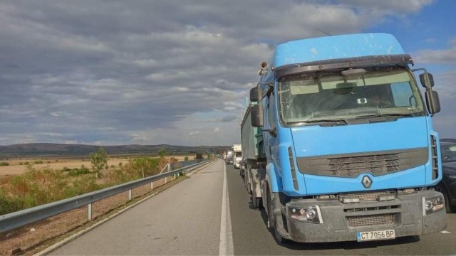 Образувало се е 10-километрово задръстване, а в момента трафикът се пренасочва по обходния маршрут п.в. "Хаджи Димово" – Сливен – Нова Загора – АМ "Тракия".