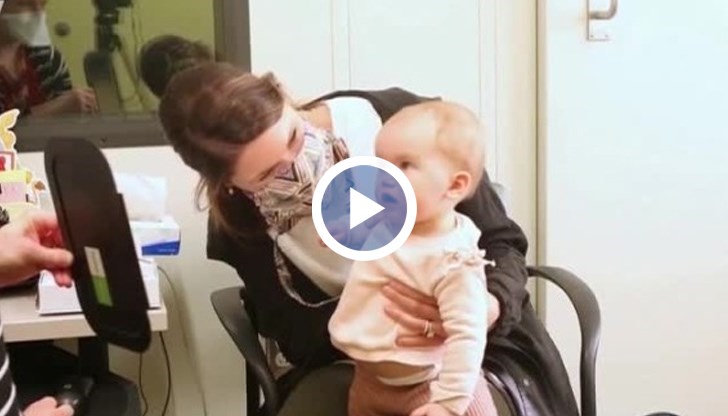 Момиченцето получи първото си слухово апаратче с кохлеарен имплант, а милият момент беше запечатан на видео.