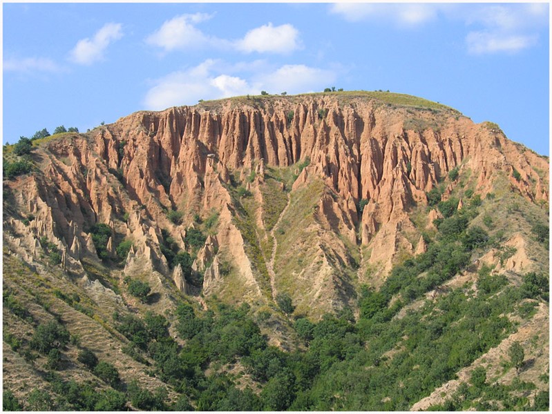 Пирамидите представляват слабоспоени неоген-кватернерни пясъчници и конгломерати, образувани през последните 1-2 млн. Цветът им варира между жълто и кафяво. Имат разнообразна форма, но повечето са конусовидни и завършват с каменна "капела", наподобявайки гъби. С течение на времето конуса, поддържащ тези "капели" изтънява и накрая короната се накланя и пада, а ерозията заостря и започва да намалява височината на пирамидата. В същото време възникват други нови образувания.