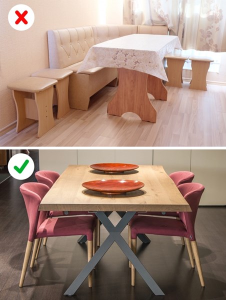 Легло с нощни шкафчета, гардероб и скрин в един и същия стил, еднакви диван и фотьойл в хола - мебелните комплекти са напълно остарели. Дизайнерите препоръчват да изберете различни, ни кореспондиращи мебели от различни комплекти.