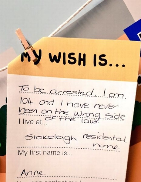 Домът за възрастни Stokeleigh Care Home в Бристъл, в който живее пенсионерката, реши да поглези обитателите си с благотворителна акции. Те написаха на листа хартия какви желания искат да им бъдат изпълнени, като посочват и контакти за връзка. След това листчетата бяха изпратени в търговските вериги, където се окачваха на видими места, за да могат посетителите да изпълнят желанията на пенсионерите.