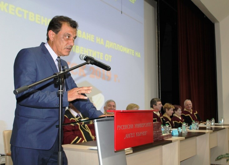 Заместник областните управители на област Русе Свилен Иванов и Валентин Колев бяха сред официалните гости на тържествената церемония по връчване на дипломите на абсолвентите от Випуск 2019 на Юридическия факултет на Русенския университет „Ангел Кънчев“.