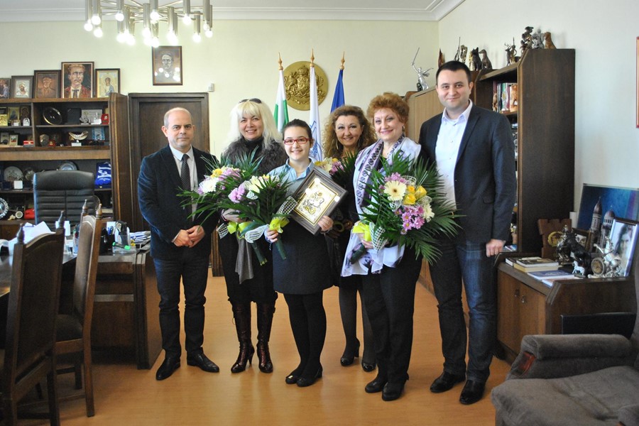 В края на срещата, г-н Стоилов поднесе на младата пианистка красив букет, знаме с герба на Русе и икона на Св. Георги Победоносец, която да я закриля и да й дава сили за много нови успехи.