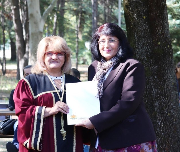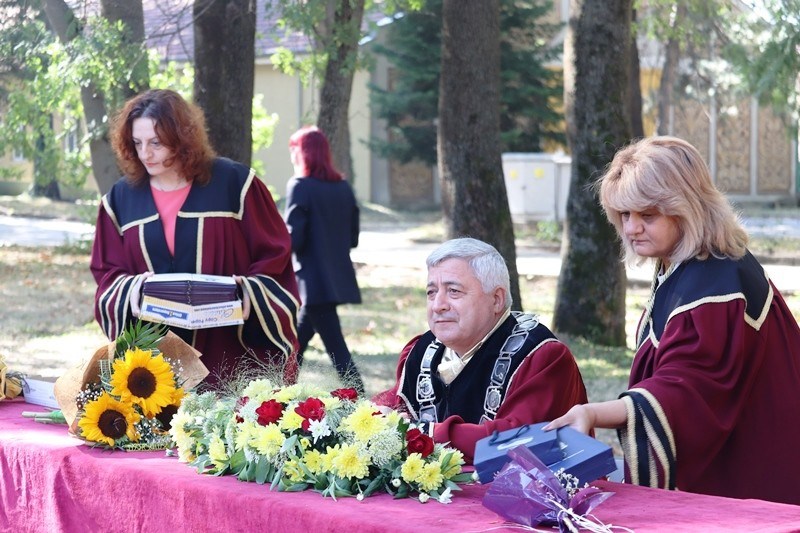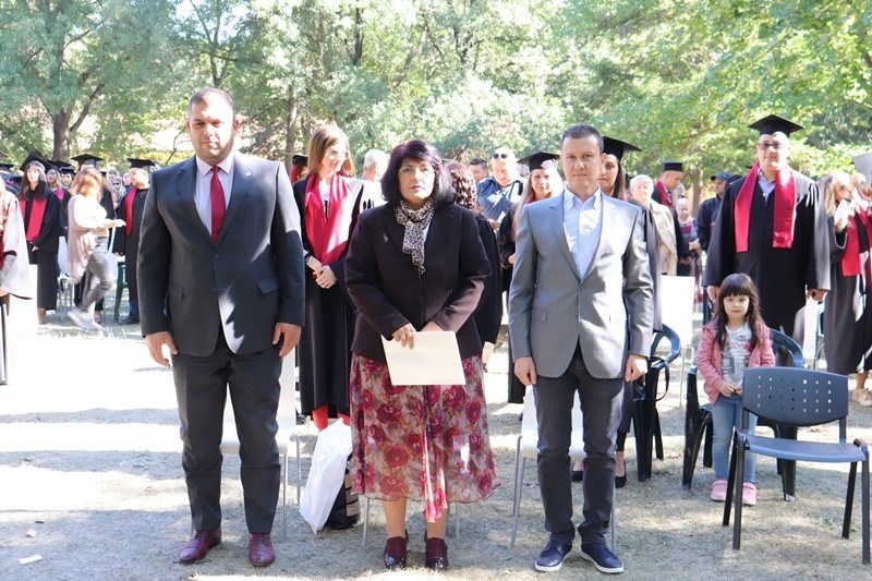 „Имате необходимите знания и може да се справите с всяка трудност, която животът ви поднесе. Вярвайте в себе си и постигайте целите си.“, каза от своя страна ректорът. Деканът на факултета доц. д-р Кремена Раянова подчерта, че винаги е имало единство между преподаватели и студенти, както и че дипломата, която получават днес не е лист хартия, а хроника за трудните дни и нощи на студентските сесии.