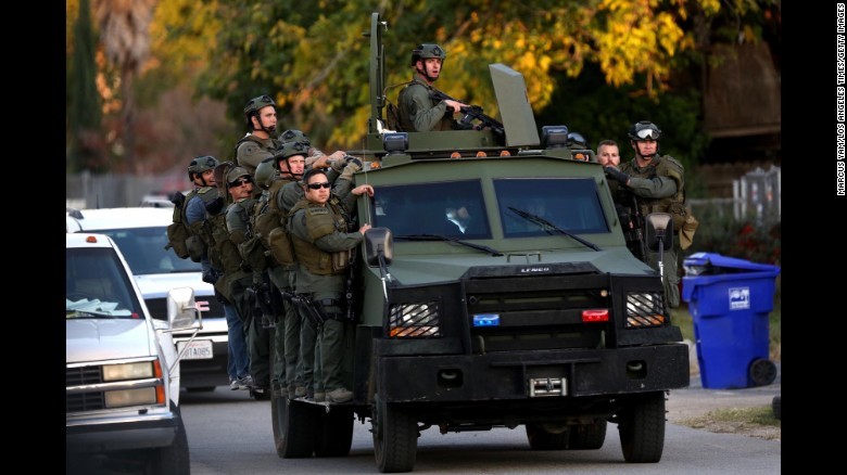 Заради убийството училищата в Сан Бернардино получиха инструкции да не пускат децата навън, а жителите на градчето да не излизат. В Сан Бернардино, който е на един час път от Лос Анджелис и който е с население от 214 000 души, са разположени стотици членове на силите на реда, подкрепяни от агенти на ФБР.