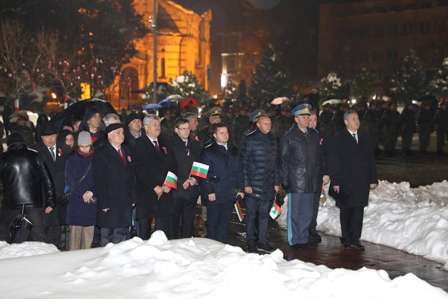 По традиция в хода на тържествената церемония бяха положени венци пред Паметника на загиналите във войните герои и воини на площад „Екзарх Йосиф”, след което се проведе тържествена вечерна проверка и отдаване на почест към освободителите и създателите на българската държава от представителни блокове на Националния военен университет „Васил Левски -Велико Търново. После площад „Екзарх Йосиф I” бе озарен от светлините от разноцветна заря.