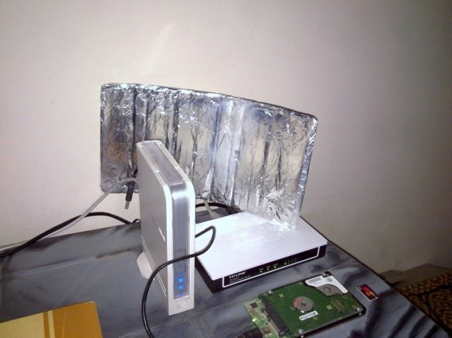 Прегънете фолиото няколко пъти и го поставете зад антената.