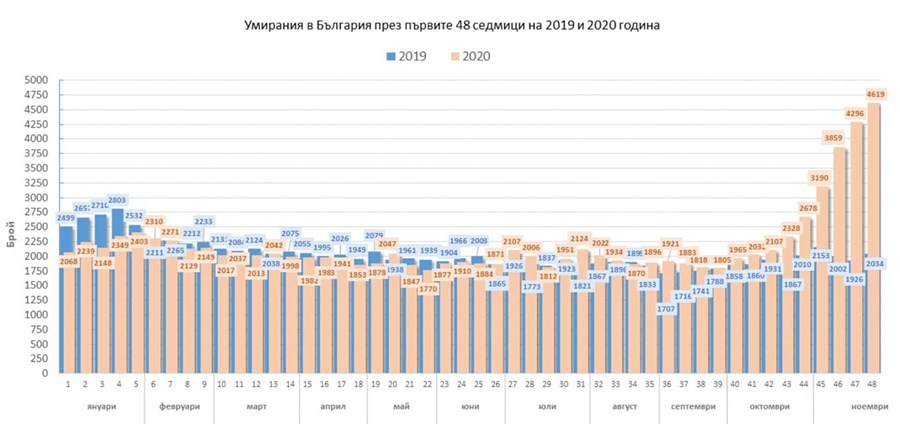 ТРЕВОЖНА СТАТИСТИКА: Какво обяснение може да има увеличената повече от два пъти смъртност през седмиците от края на октомври и през целия ноември у нас?