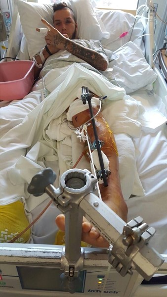 Както ПИК писа вече, най-лошо е пострадал левия крак на Бианкалана. Крайникът му е сглобен, като и в момента през него преминават крепежни елементи от медицинско желязо.