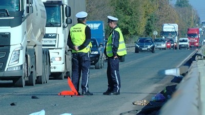 Трагедията се разигра около 13 часа в петък на платното, което е в посока София, срещу бензиностанция.