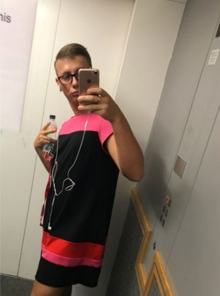 Момчето публикува снимки в Twitter с нетрадиционното си работно облекло в знак на протест срещу сексисткия дрескод в компанията му.