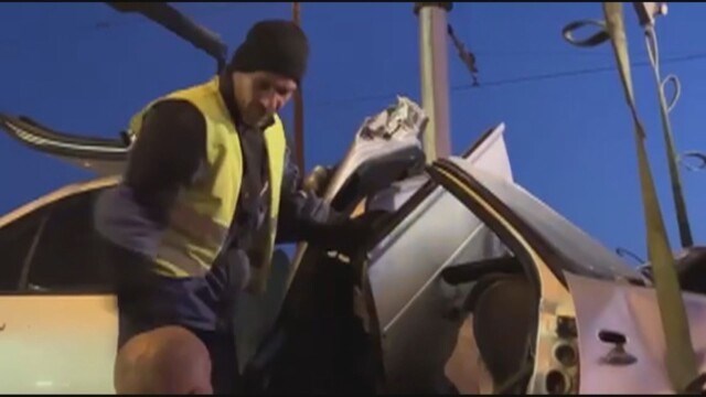 Лек автомобил се е врязал в мантинела. За да бъде освободен, се е наложило да бъде разрязан.