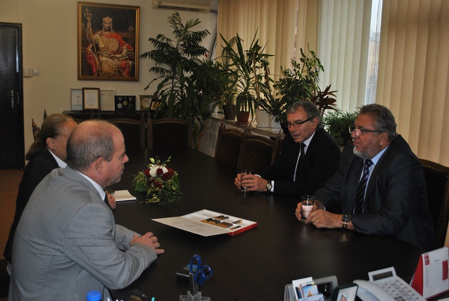 Преди официалната церемония днес, кметът на Община Русе Пламен Стоилов прие акад. Димитър Димитров в кабинета си. Заедно те обсъдиха развитието на ВУАРР в град Русе.