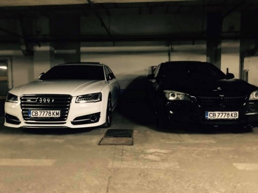 Митков с гордост позира до придобивките си. А всяка от тях е за по няколкостотин хиляди лева. Една до друга в покрития му гараж съжителстват лимузини от марките "Ауди" S8, тунингован "Мерцедес" Brabus, свръхзвуково "Порше" и мощен баварец.