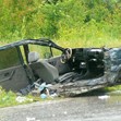 При удара леката кола се разцепила на две. Едната и част спряла в канавката, другата продължила на метри в нивата. В канавката останал на място и 30-годишният пътник. Шофьорът на "Голф"-а е откаран в болницата.