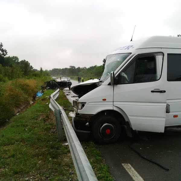 "Малко след разклона за село Близнаци, след завоя на правото се показа лека кола направо срещу мен.", разказа пред репортери водачът на буса.