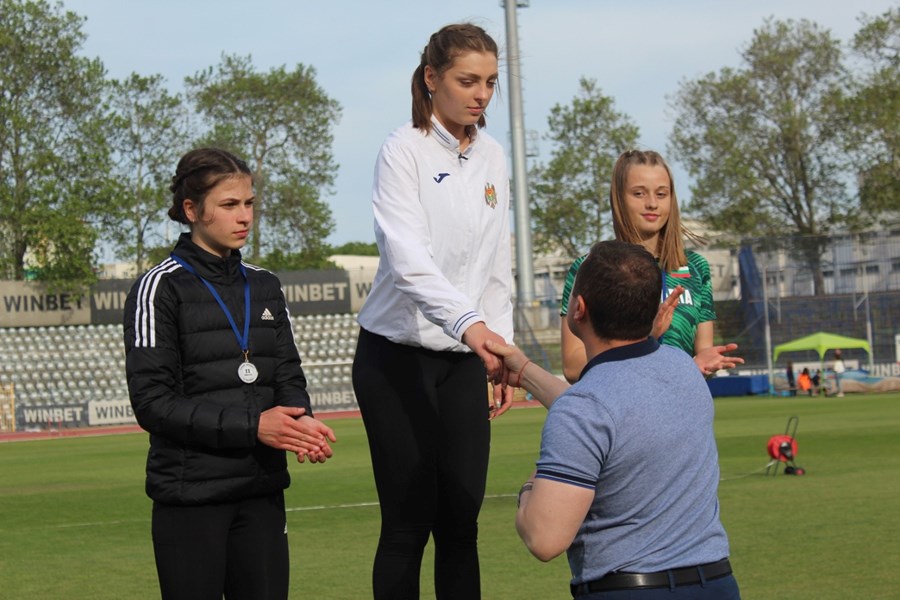 Румънката Марина Юсумбели също победи на троен скок при девойките с 12.37 (0.5) – втори резултат в Европа за тази възраст за сезона. Петя Бозукова от „Ботев – Пловдив“ се приземи на 12.27 в шестия си опит и така покри норматив за европейско първенство. С този метраж тя е четвърта на континента в началото месец май. Третата позиция бе за Елена Аргирова от Сливен с 11.80.