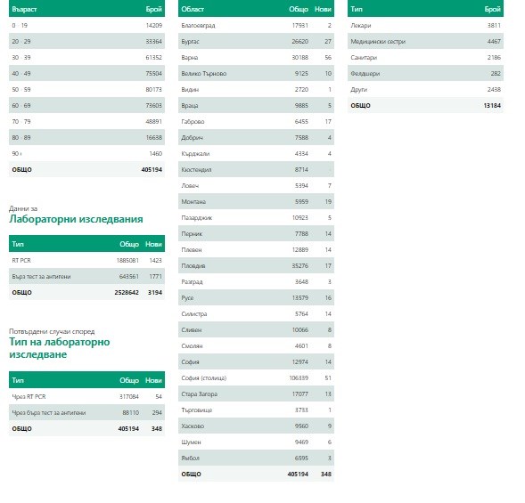 Положителната новина е, че излекуваните са 553 за последния ден или 340 442 души от началото на епидемията. В болница са 6754 души, а в реанимация са 662 болни.
