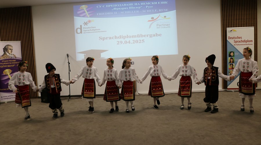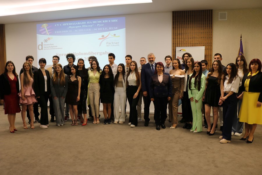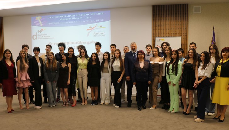 35 от общо 75 зрелостници от Средното училище с преподаване на немски език „Фридрих Шилер" в Русе получиха своите дипломи за владеене на немски език. Церемонията по връчването се проведе в конферентната зала на хотел „Рига" тази вечер.
