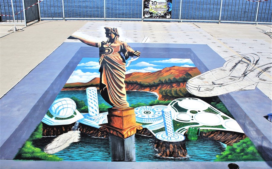 Петима художници от България и чужбина създадоха "3D утопични светове" на кея в Русе по време на фестивала "3D Street Art".