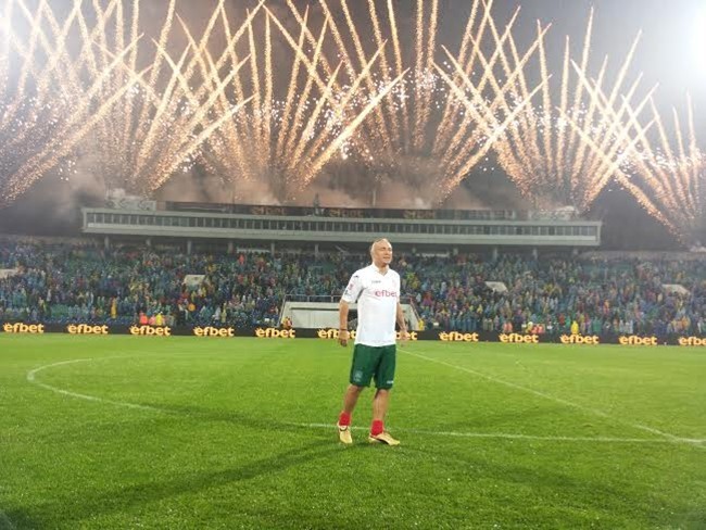Христо обаче не издържа дълго на тъчлинията и се върна на игрището. По-късно излезе отново, за да изпрати с шутове с неповторимата си левачка топки като подарък към публиката. И после й се поклони.