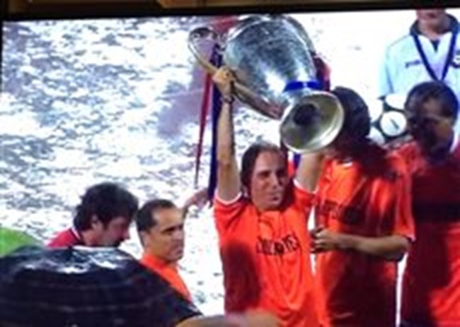 След почивката на терена донесоха Купата на европейските шампиони, която Ицо спечели с "Барселона" през 1992 г. Донес я някогашният му съотборник Чики Бегиристайн.