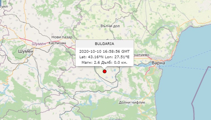 По данни на Сеизмологичния център към НИГГГ на БАН на 10.10.2020 г. в 19 часа и 58 минути българско време е регистрирано друго земетресение с епицентър в района на с. Манастир, общ. Провадия, обл. Варна.